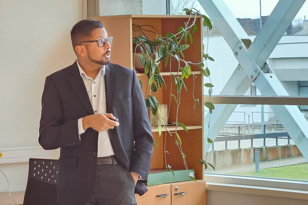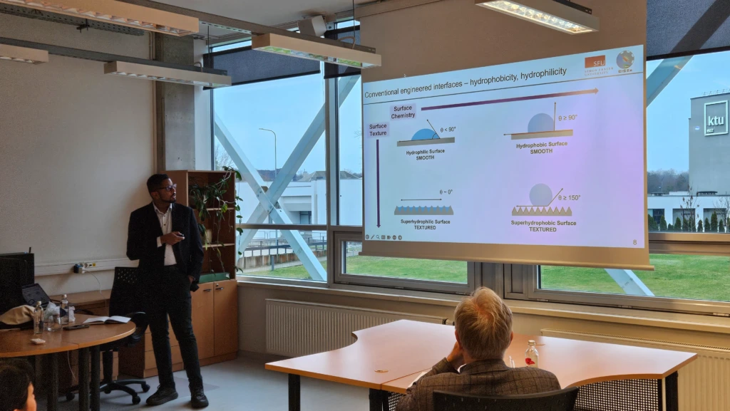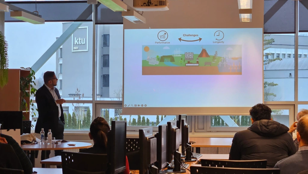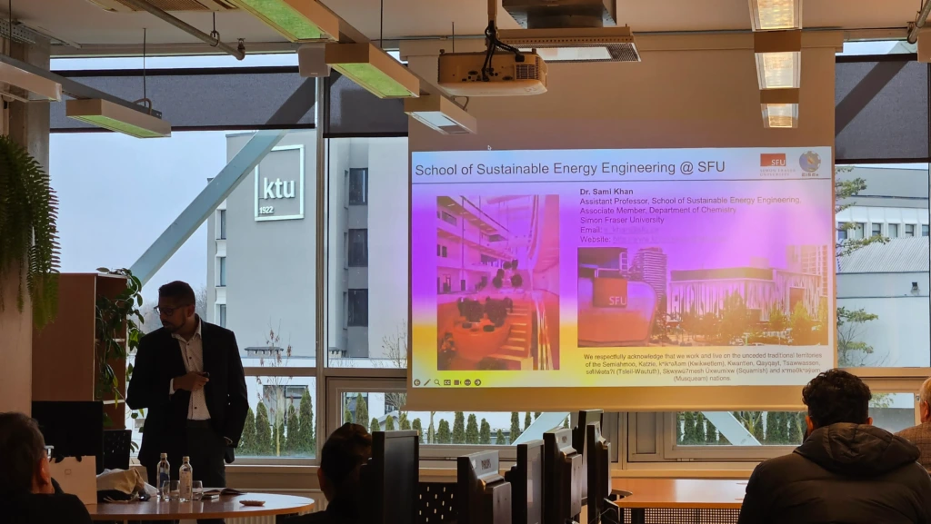 On December 5, 2025, the seminar at KTU Institute of Materials Science featured Dr. Sami Khan, Assistant Professor at Simon Fraser University (Canada). His talk, *Ideating at Interfaces: Enhancing Performance and Longevity of Sustainable Energy Systems*, explored how interfacial engineering can unlock new capabilities for sustainable energy technologies.
