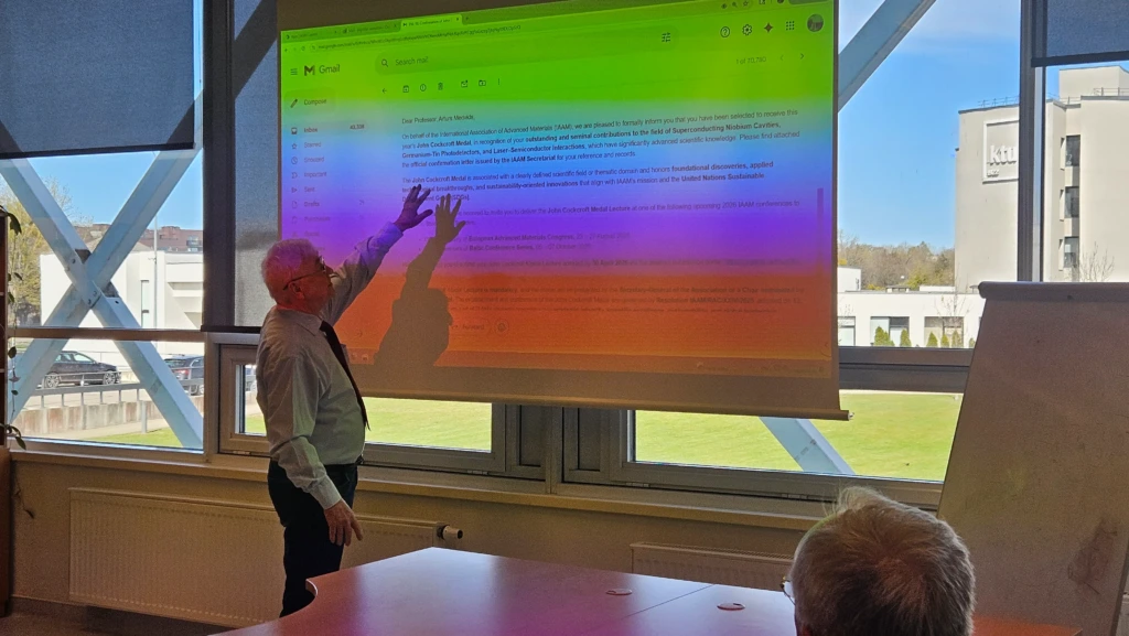On April 23, 2026, a scientific seminar was held at the KTU Institute of Materials Science, delivered by Prof. Dr. habil. Artūrs Medvids from Riga Technical University (Latvia), Head of the Laboratory of Semiconductor Physics.